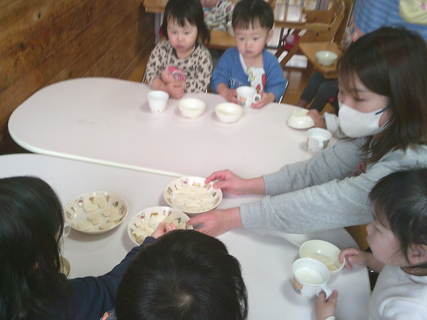 新着情報 園の様子 (1) 子どもの姿 園の様子 2026/03/30 今日の昼からのおやつは、うさぎやきょうりゅうなどの型抜きした食パンにジャムをつけて頂きました。子どもたちは、色々な形に興味を示して食パンをいただき、楽しいおやつの時間となりました。 TOP 1 Next
